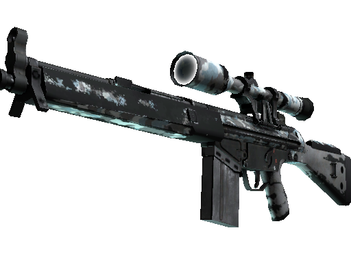 The pricy G3SG1 lowers movement speed considerably but compensates with a higher rate of fire than other sniper rifles. It has been painted using an arctic camo hydrographic.
